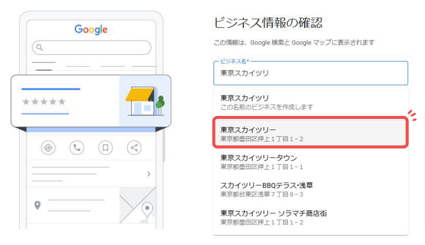 2管理したい施設名を入力し該当のビジネスをクリック